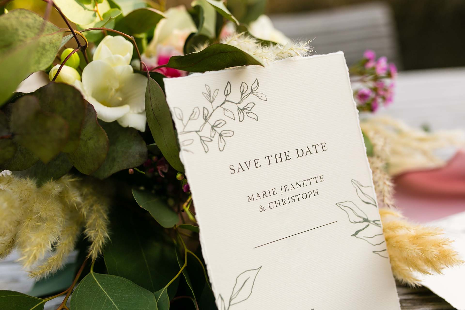 Die Safe the Date Karte ist nur nötig, wenn das Brautpaar bereits einen Termin, aber noch keine Location oder keine Tendenz zum Motto und Stil der Hochzeit hat. Anders verhält es sich mit der Einladung, die rechtzeitig versandt und bestenfalls mit einer Rückantwortkarte gestaltet ist. Wer kirchlich heiratet, kann ein entsprechendes Programmheft zur Zeremonie erstellen und es den Gästen gemeinsam mit der Einladung senden. Platzkärtchen sorgen für eine stressfreie Platzsuche und sollten in der Kombination der "Sitzpartner" ganz konkret geplant werden. Die Menükarte wird im Stile der Tischdeko gestaltet. Nach der Hochzeit werden persönliche Dankeskarten - bestenfalls mit einem Hochzeitsfoto an die Gäste versandt.