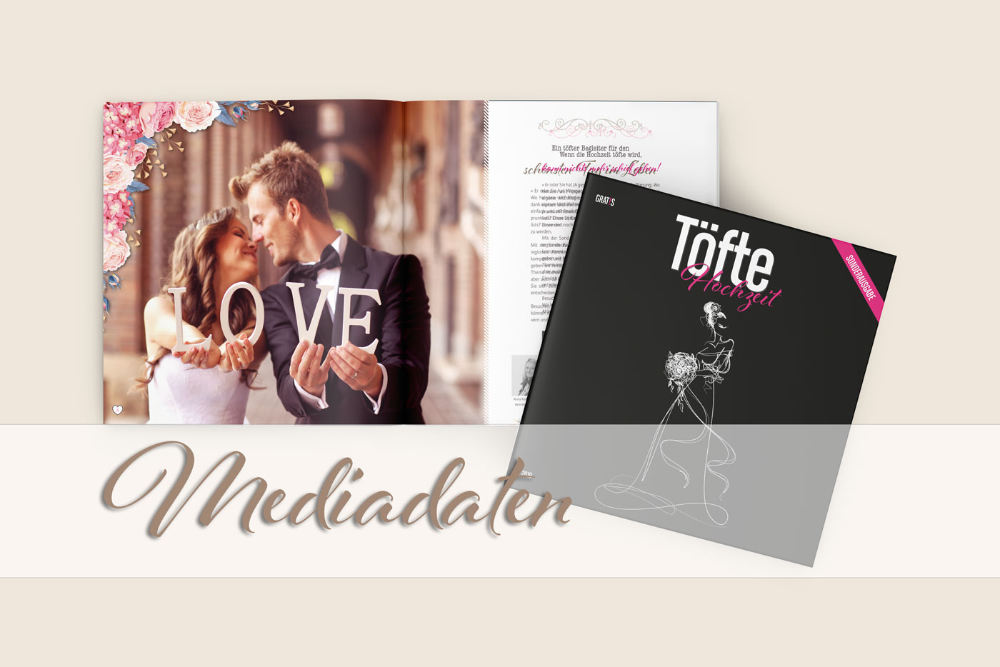 Möchten Sie noch mehr Aufmerksamkeit? Platzieren Sie sich in unserem jährlich erscheinenden Hochzeitsmagazin und erreichen Sie ein breiteres Publikum. Mit unseren Mediadaten können Sie sich über die verschiedenen Platzierungsoptionen und Preise informieren, um Ihren Auftritt im Magazin perfekt zu gestalten.