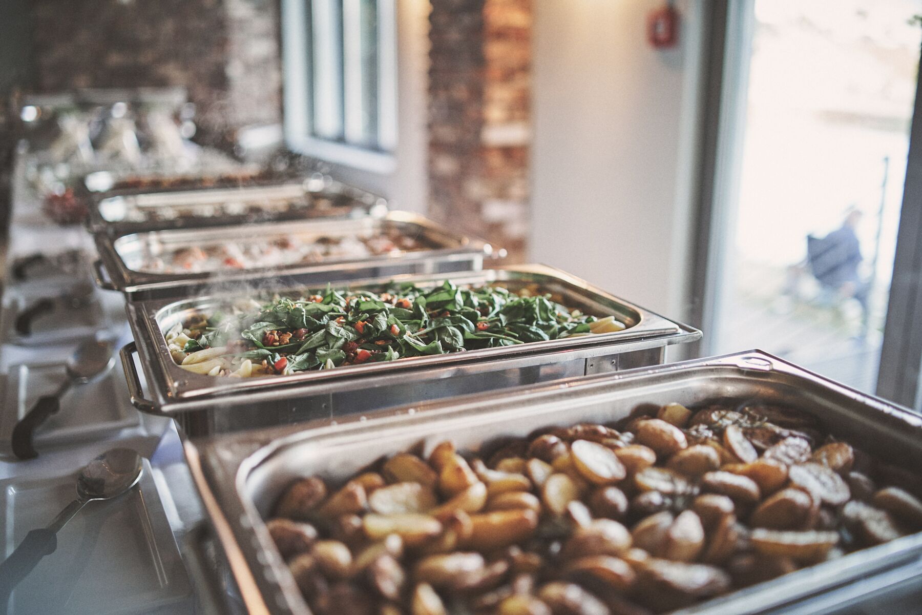 Der Hafensaal ist mit seinen 100 Sitzplätzen, den langen Tafeln und den großen Fenstern das Zentrum des Geschehens. Mit dem angeschlossenen Kaminzimmer finden sogar Gesellschaften bis zu 135 Personen Platz. Für die kulinarischen Highlights vom Buffet über Fingerfood oder dem Mitternachtssnack ist das Küchenteam um Jan Wellner zuständig. Der Chefkoch hat ein facettenreiches Repertoire an Rezeptideen aus der modernen, aber auch klassischen Küche.